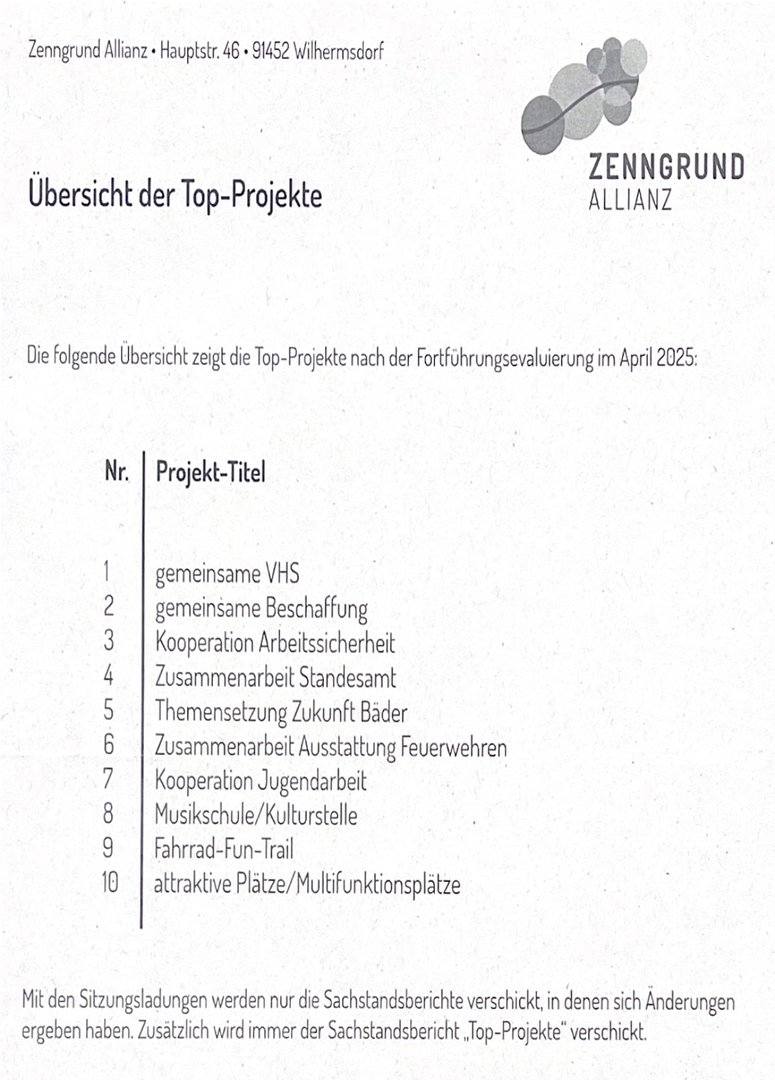 Die eher nördliche Allianz „Zenngrund“ hat mehrere kleinere Gemeinden, die eher zu Vorhaben in Ammerndorfer Größenordnung passen als in der südlichen Allianz, in der auch Zirndorf und Stein z.B. Mitglied sind.