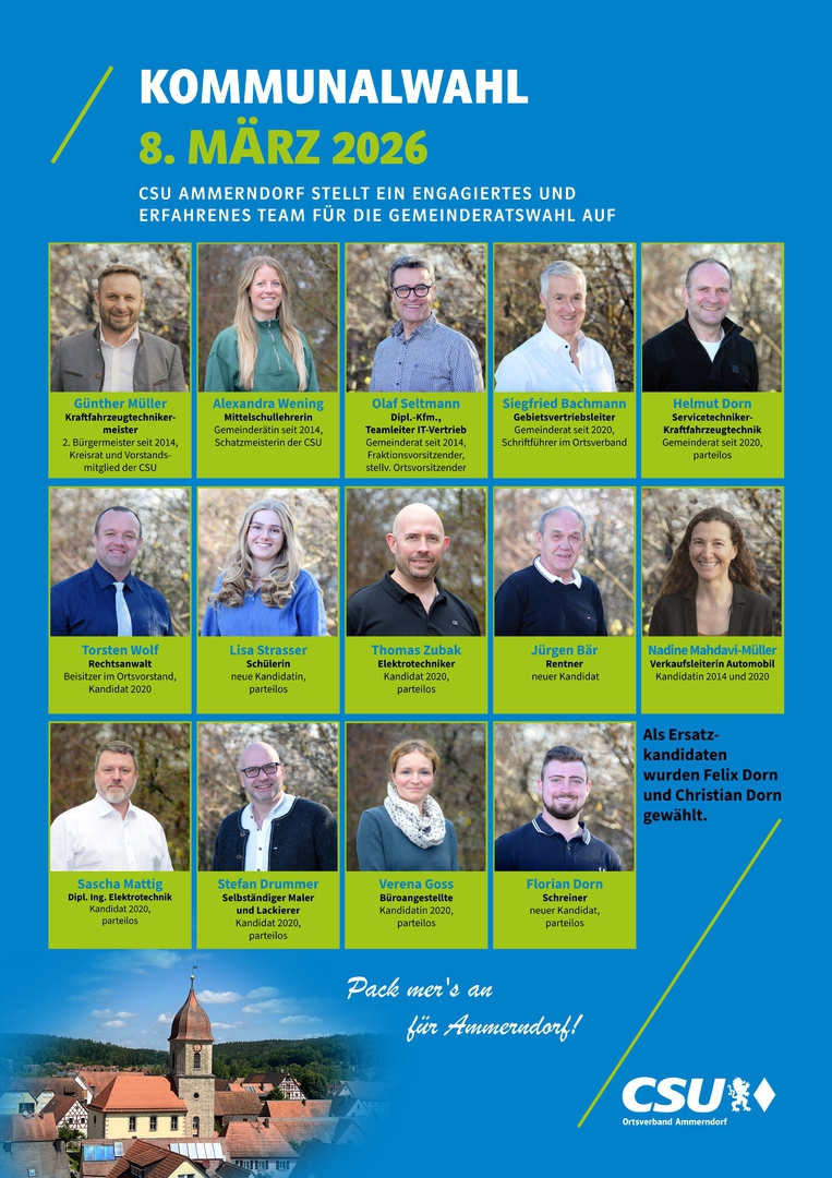 Die Kandidatinnen und Kandidaten der Ammerndorfer CSU